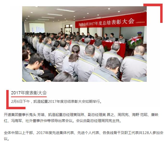 2018-02 凯澄起重2017年度总结表彰大会如期召开