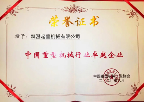 凯澄起重机械有限公司凭借良好的生产经营业绩和品牌影响力,从中国重机协会1200家会员企业中脱颖而出,被评为“中国重型机械行业卓越企业”,总经理黄珑琳荣获“中国重型机械行业优秀企业家”称号。凯澄公司再次当选“中国重型机械工业协会常务理事单位”。