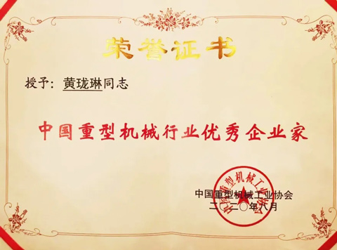 ▲“中国重型机械行业优秀企业家”荣誉证书
